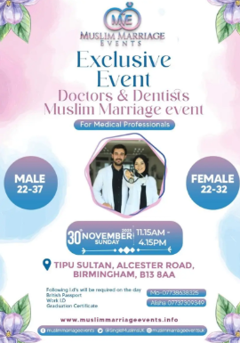 The Muslim matchmaking service Birmingham edition is designed specifically for Muslim doctors, dentists, and healthcare professionals who are looking to meet others from similar professional and educational backgrounds. This event welcomes British passport holders who value faith, family, and long-term commitment within an Islamic framework.